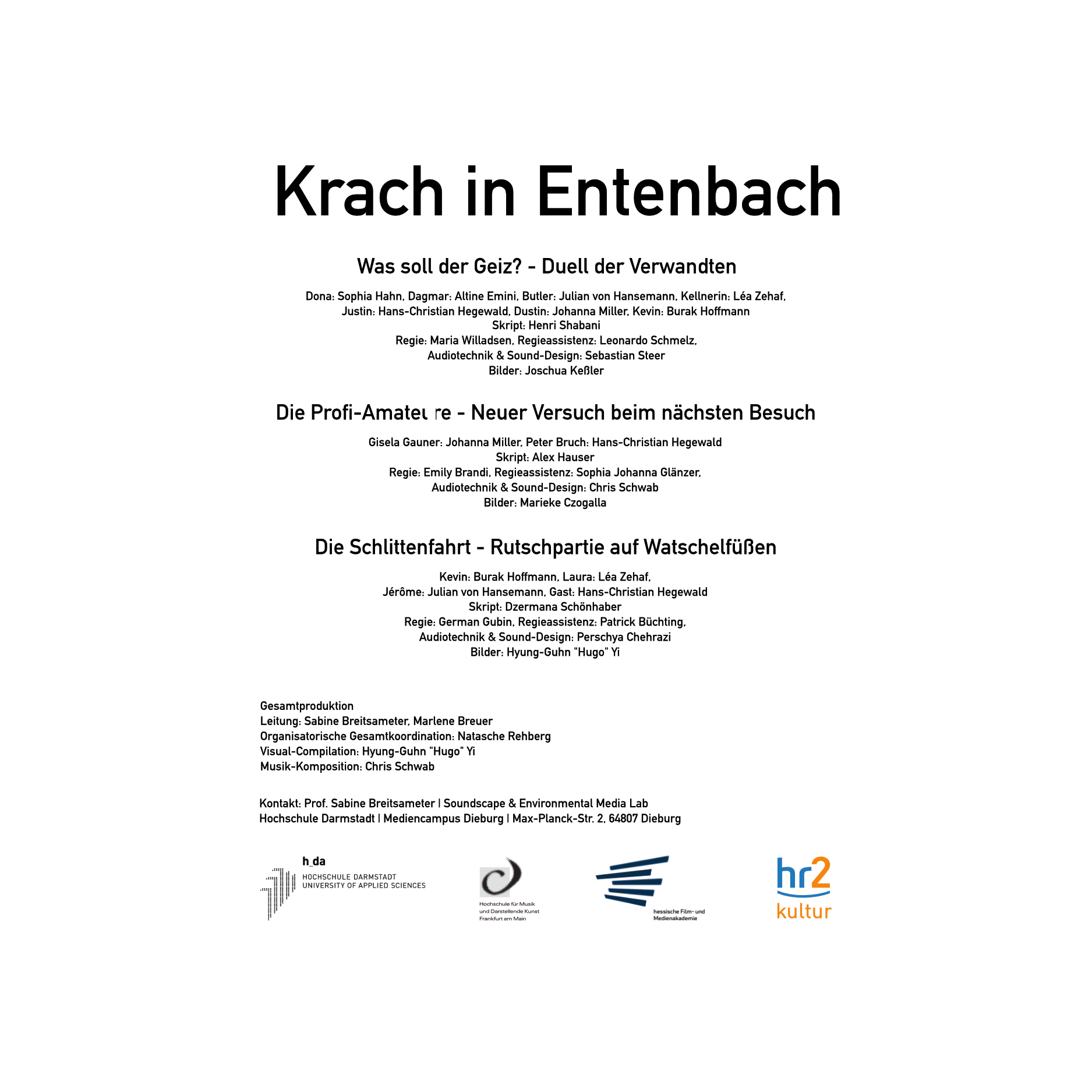 Die audiovisuellen Hörspiele entstanden in Zusammenarbeit mit HR2 und dem hFMA-Netzwerk im Rahmen der Lehrveranstaltung Comic, Komik, Komödie – Text, Stimme und Aktion